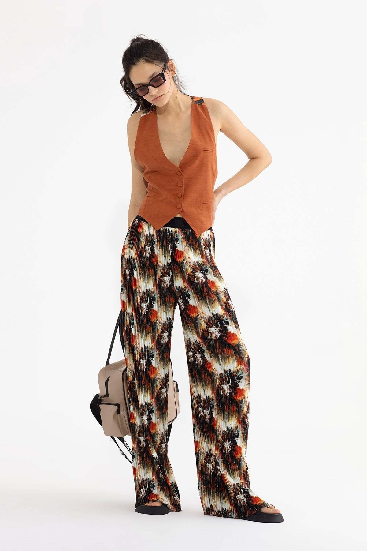 %100 polyester materyal bileşeni sayesinde uzun ömürlü kullanım ve dayanıklılık sunar; Dokuma kumaş tipi, nefes alabilir yapısıyla konforlu bir deneyim sağlar; Regular boy kesimi ile her vücut tipine uyum sağlayarak rahat bir kullanım imkanı tanır; Canlı ve renkli deseniyle dikkat çekici bir stil oluşturur, günlük kombinlerinize enerji katar; Düz tasarımı sayesinde sade ve şık bir görünüm elde edersiniz; farklı üst giyim parçalarıyla kolayca kombinlenebilir; Normal bel yüksekliği, gün boyu rahat hareket etme özgürlüğü verirken şık bir duruş sergiler; Tüm yaş gruplarına hitap eden geniş kullanım yelpazesi ile herkes için idealdir;